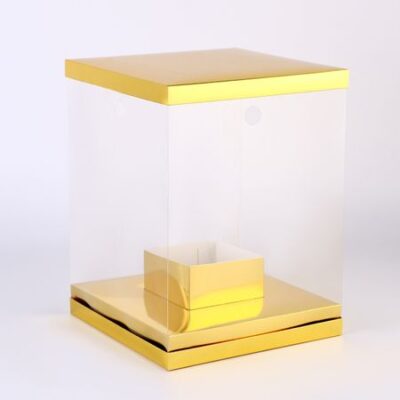 Коробка для цветов с вазой и PVC окнами складная, 23×30×23 см, золото. <strong> Коробка для цветов с вазой и PVC окнами</strong> — это удобное и стильное решение для хранения и презентации ваших букетов. <strong> Размер внутренней вазы: 13 х 13 х 10 см</strong> , что позволяет разместить в ней несколько цветов одновременно. Окна из ПВХ на боковых стенках коробки позволяют легко просматривать цветы, не открывая коробку, что делает процесс ухода за ними более удобным. Коробка изготовлена из высококачественного картона, который обеспечивает надежность и долговечность конструкции. Кроме того, она легко складывается, что облегчает транспортировку и хранение. Эта коробка для цветов с вазой и PVC окнами — прекрасный выбор для тех, кто хочет создать уютную атмосферу в своем доме или офисе, добавив яркие краски живых растений.