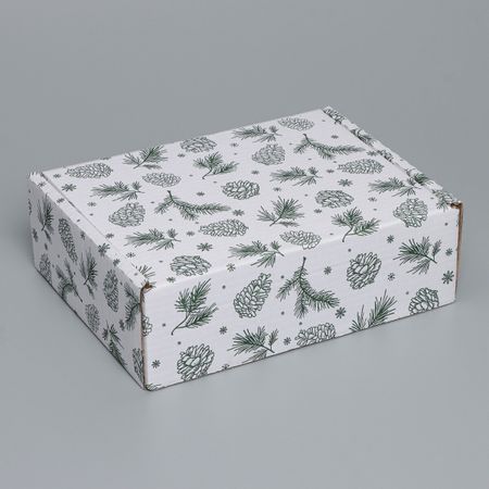 Главная » Товары для детей Коробка новогодняя складная Просмотров 4 Коробка новогодняя складная «Шишки», белый, 27 х 21 х 9 см, Новый год. Дарите Счастье