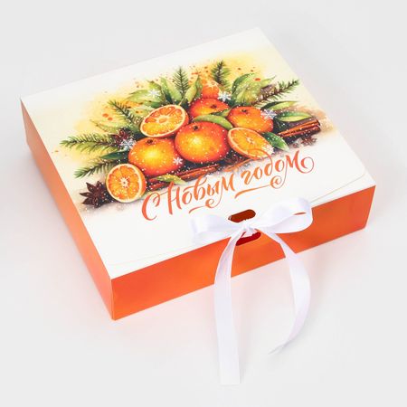 Коробка подарочная новогодняя складная, упаковка, «Апельсины», 20×18×5 см. <strong> Складная подарочная коробка новогодняя с лентой, размером 20 × 18 × 5 см</strong> — это стильное и удобное решение для упаковки ваших праздничных подарков. Эта элегантная коробка с новогодним дизайном станет идеальным выбором для демонстрации ваших подарков в самые важные моменты. Изготовленная из прочного картона, коробка обеспечивает надежную защиту содержимого и легко складывается, что упрощает хранение и транспортировку. Яркий новогодний дизайн с праздничными элементами создает атмосферу волшебства и радости, а мягкая лента на крышке добавляет дополнительный элемент изысканности и завершенности. Размеры коробки 20 × 18 × 5 см идеально подходят для упаковки небольших подарков, аксессуаров или сладостей. Складная конструкция позволяет легко собрать и разобрать коробку, что делает ее удобной в использовании. <strong> Подарочная коробка с лентой — это не просто упаковка, а часть праздничного настроения, которая подчеркнет внимание к деталям и добавит особое волшебство в любой подарок.</strong>
