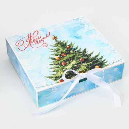 Коробка подарочная новогодняя складная, упаковка, «Снежная Ёлка», 20×18×5 см. <strong> Складная подарочная коробка новогодняя с лентой, размером 20 × 18 × 5 см</strong> — это стильное и удобное решение для упаковки ваших праздничных подарков. Эта элегантная коробка с новогодним дизайном станет идеальным выбором для демонстрации ваших подарков в самые важные моменты. Изготовленная из прочного картона, коробка обеспечивает надежную защиту содержимого и легко складывается, что упрощает хранение и транспортировку. Яркий новогодний дизайн с праздничными элементами создает атмосферу волшебства и радости, а мягкая лента на крышке добавляет дополнительный элемент изысканности и завершенности. Размеры коробки 20 × 18 × 5 см идеально подходят для упаковки небольших подарков, аксессуаров или сладостей. Складная конструкция позволяет легко собрать и разобрать коробку, что делает ее удобной в использовании. <strong> Подарочная коробка с лентой — это не просто упаковка, а часть праздничного настроения, которая подчеркнет внимание к деталям и добавит особое волшебство в любой подарок.</strong>