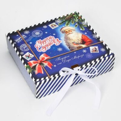 Коробка подарочная новогодняя складная, упаковка, «Чудеса случаются», 20×18×5 см .. <strong> Складная подарочная коробка новогодняя с лентой, размером 20 × 18 × 5 см</strong> — это стильное и удобное решение для упаковки ваших праздничных подарков. Эта элегантная коробка с новогодним дизайном станет идеальным выбором для демонстрации ваших подарков в самые важные моменты. Изготовленная из прочного картона, коробка обеспечивает надежную защиту содержимого и легко складывается, что упрощает хранение и транспортировку. Яркий новогодний дизайн с праздничными элементами создает атмосферу волшебства и радости, а мягкая лента на крышке добавляет дополнительный элемент изысканности и завершенности. Размеры коробки 20 × 18 × 5 см идеально подходят для упаковки небольших подарков, аксессуаров или сладостей. Складная конструкция позволяет легко собрать и разобрать коробку, что делает ее удобной в использовании. <strong> Подарочная коробка с лентой — это не просто упаковка, а часть праздничного настроения, которая подчеркнет внимание к деталям и добавит особое волшебство в любой подарок.</strong>