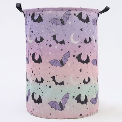 Корзина для игрушек «Летучие мыши», 48×40×40 см. Корзина для хранения игрушек «Летучие мыши» станет стильным и функциональным решением для детской комнаты. Ее яркий дизайн впишется в любой интерьер, а практичная конструкция упрощает организацию пространства. Теперь у игрушек будет свое место, а порядок станет приятным и легким делом. <b> Особенности</b> <ul> <li> Изготовлена из плотного материала на хлопковой основе, что делает корзину легкой и удобной в использовании.</li> <li> В конструкции отсутствует классический каркас из спиц. Округлую форму емкости поддерживает кольцо из проволоки.</li> <li> Цилиндрическая форма обеспечивает оптимальное использование пространства.</li> <li> Ручки позволяют легко переносить корзину даже в наполненном состоянии.</li> </ul> Размеры корзины идеально подходят для хранения разнообразных игрушек, от мягких зверей до конструктора. Компактность позволяет разместить ее в углу комнаты или под столом. Цветовая гамма добавляет свежести и гармонии в обстановку.