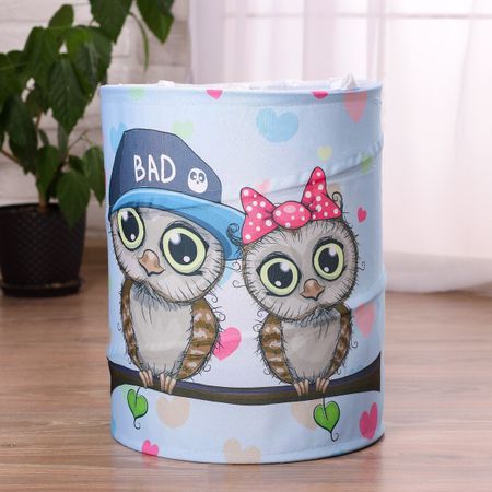 Корзина для игрушек «Совята». Корзина для хранения игрушек «Совята» станет стильным и функциональным решением для детской комнаты. Ее яркий и красочный дизайн впишется в любой интерьер, а практичная конструкция упрощает организацию пространства. Теперь у игрушек будет свое место, а порядок станет приятным и легким делом. Для того чтобы уборка игрушек стала веселее, занимайтесь ей вместе с ребенком и ведите счет, кто положил больше предметов в корзину. Так вы приучите малыша к порядку и чистоте, и в дальнейшем кроха будет сам поддерживать их в комнате. <b> Особенности</b> <ul> <li> Изготовлена из плотной ткани и имеет причудливую крышку-сеточку, которую можно затянуть шнурком, что делает корзину легкой и удобной в использовании.</li> <li> В конструкции каркас выполнен из спиц в форме пружины.</li> <li> Цилиндрическая форма обеспечивает оптимальное использование пространства.</li> <li> Ручки позволяют легко переносить корзину даже в наполненном состоянии.</li> </ul> Размеры корзины идеально подходят для хранения разнообразных игрушек, от мягких зверей до конструктора. Компактность позволяет разместить ее в углу комнаты или под столом. С корзиной «Совята» вы не только упрощаете хранение, но и добавляете комнате уникальный акцент. Вдохните свежесть природы в повседневный быт!