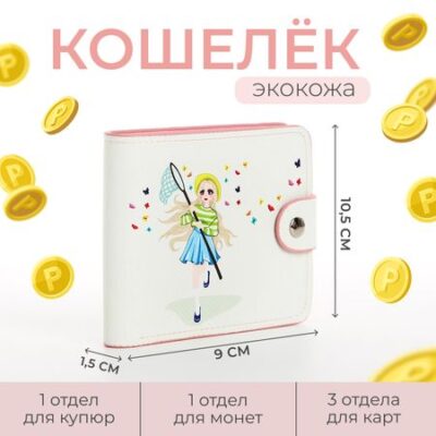 Кошелек на кнопке, цвет голубой. Элегантный голубой кошелек создан для маленьких модниц. Этот аксессуар с кнопочной застежкой представляет собой удобное решение для организации личных мелочей. Его стильное двойное сложение и рисунок с изображениями девочек делают его идеальным для юных искательниц приключений. <b> Особенности</b> <ul> <li> Изготовлен из прочной искусственной кожи, обеспечивающей долговечность использования.</li> <li> Два вместительных отделения для хранения всех необходимых мелочей и небольших сокровищ.</li> <li> Идеальный выбор для девочек, которые желают подчеркнуть свой особый стиль и индивидуальность.</li> </ul> <b> Стиль и функциональность</b> Этот кошелек — не просто аксессуар, а верный спутник вашей девочки. Он сохраняет самые важные мелочи в одном месте и привносит в ее образы нотки уникальности. Данный кошелек подчеркивает стиль и создает возможность для самовыражения, превращая любой момент в праздник.