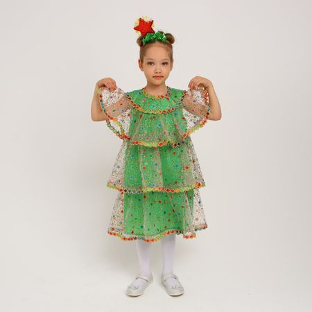 Костюм карнавальный детский «Ёлочка волшебная», новогодний, органза, р. 28, рост 98-104 см. Эффектный наряд, который поможет девочке почувствовать себя настоящей звездой праздника. Яркое зеленое платье и ободок с украшениями создадут волшебный образ, который станет изюминкой новогоднего торжества. <b> Комплектация костюма</b> <ul> <li> Пышное платье.</li> <li> Ободок с украшениями.</li> </ul> Пышное платье с ободком и украшениями придаст образу особый шарм. Ободок со звездой добавит оригинальности и уникальности. В таком костюме девочка будет выглядеть нарядно и привлекательно, несомненно становясь главным украшением любого мероприятия. Этот наряд идеально подойдет для новогодних утренников, фотосессий, театрализованных постановок и других торжественных мероприятий. Волшебный образ елочки вызовет восхищение у всех присутствующих и подарит массу положительных эмоций.