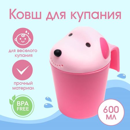 Ковш пластиковый для купания и мытья головы, детский банный ковшик «Собачка», 600 мл., с леечкой, розовый. Ковш используется как продукт для купания, так и просто детская игрушка. У ковшика устойчивое дно, оптимальный объем и в то же время очень легкий вес. Детский ковш сделает процесс купания легким и приятным как для мамы, так и для ребенка.