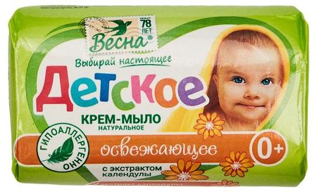 Весна крем-мыло "Детское" — натуральный, безопасный продукт для детей с первых дней жизни по доступной цене. Обогащен экстрактом календулы, который обладает противовоспалительным, укрепляющим и смягчающим действием. Эффективен при решении специфических проблем кожи (высыпания, покраснения, шелушения). Имеет гипоалергенный состав и подходит для применения с первых дней жизни.