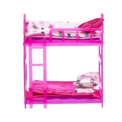 Кроватка для кукол «Игровой набор: Сладкие сны». Ваша принцесса любит играть в куклы? Тогда эта игрушка будет радовать ее каждый день! Кроватка дополнит интерьер кукольного домика, и игры станут более увлекательными и реалистичными. <b> Подробнее об игрушке</b> <ul> <li> В комплект входит 2-ярусная кровать, постельное белье (2 комплекта).</li> <li> Высота кровати — 14 см.</li> <li> Подходит для кукол ростом до 11 см.</li> <li> Постельное белье и другие принадлежности: 3 подушки, 2 простыни, 2 одеяла. Девочка с удовольствием уложит свою куклу на мягкую подушку и накроет ярким одеялом.</li> <li> 2-ярусная кровать удобна в использовании, так как на нее можно уложить спать сразу 2 куклы!</li> <li> Подходит для детей в возрасте от 3 лет.</li> </ul> <b> Играть в куклы — полезно</b> Взаимодействуя с такими игрушками, девочка улучшает сообразительность, тренирует фантазию и эстетический вкус, а также мелкую моторику.