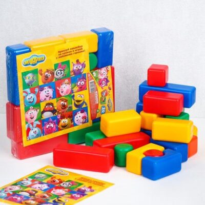 Кубики детские «Смешарики», набор 20 элементов, 4×4 см. Строительный набор от ТМ «Соломон» воплотит в жизнь архитектурные фантазии вашего малыша. С его помощью он научится строить дома и мосты, возводить высокие башни и небольшие сооружения. Польза Красочный строительный набор разовьет у крохи мелкую моторику, координацию движений, воображение, логическое и образное мышление, навыки конструирования. Из ярких частей малыш построит множество вариаций, с каждым новым разом совершенствуя свою фантазию. Безопасность Все детали изготовлены из особого гипоаллергенного полиэтилена, который не выделяет вредных летучих веществ, в том числе и при нагревании. Безопасный и прочный материал практически невозможно сломать, он выдерживает большие нагрузки. Если наступить на кубики или уронить, они просто деформируется, а не сломаются, что исключает любую возможность пораниться. Зимой при низких температурах материал не меняет своих свойств. Полиэтилен и красители в составе игрушки — сырье, не подвергшееся переработке, а значит, совершенно безопасное для детей. Товар разработан и произведен в России из российских материалов под строгим контролем на всех этапах. Что исключает попадание брака на рынок. Все швы фигурок качественно обработаны, никогда не поцарапают нежную кожу малыша. Имеет сертификат соответствия ЕАС. Примечание: набор содержит мелкие элементы, поэтому предназначен для деток от 1 года. Играть под присмотром взрослых.