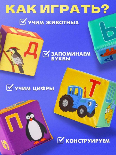Главная » Товары для детей Кубики мягкие Просмотров 5 Кубики мягкие «Учим алфавит», 6 шт., 10×10 см, Синий трактор. Синий трактор
