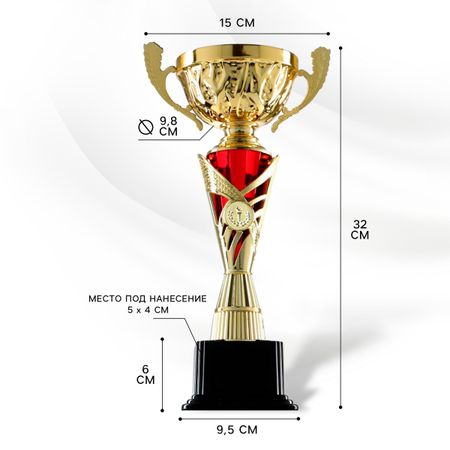 Кубок 155C, наградная фигура, золото, подставка пластик, 32 см. Кубок — заслуженная награда для победителей спортивных соревнований: районных, городских, областных и всероссийских. Изделие используют в качестве подарка на юбилей, профессиональный праздник или для знаменательных дат. Помимо основных своих функций, кубок послужит прекрасным украшением интерьера и станет памятным сувениром, а также подарит незабываемые впечатления участникам соревнований, состоит из материалов высочайшего качества и имеет уникальный дизайн.