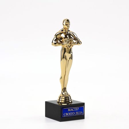 Кубок наградная фигура «Мастер своего дела», оскар, пластик, подставка камень, 18 см. Устройте персональную церемонию вручения «Оскара»! Сделайте приятное родным и близким — скажите, как они дороги вам, выразите свою любовь, благодарность и восхищение. А с таким сувениром этот момент запомнится на долгие годы. Золотистая фигура «Оскар» с лавровым венком в руках дополнена подставкой из камня. На постаменте есть яркий голографический шильд со званием получателя награды. Дарите родным и близким яркие моменты!
