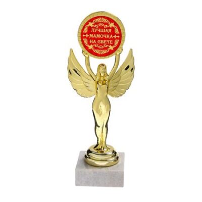 Кубок ника «Лучшая мамочка на свете», 18 см. <b> Заслуженная награда</b> Как же приятно, когда твои заслуги оценивают и признают! Кубок ника «Лучшая мамочка на свете», 18 см непременно порадует получателя и станет отличным напоминанием о проведенном вместе времени. Награда, выполненная в виде медали, обрамленной лавровой ветвью, расположена на подставке. Цветная вставка изготовлена из металла, залитого полимерной смолой, что предотвращает ее потускнение. Сувенир упакован в картонную коробочку с прозрачным окном.