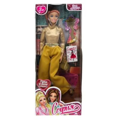 Кукла 29 см КАРАПУЗ 66001-BF50-S-BB. Кукла «София» ТМ «Карапуз» станет прекрасным подарком для вашей принцессы:<br> — руки и ноги сгибаются<br> — расческа и сумочка в наборе<br> <br> Модница София одета в элегантный наряд, состоящий из желтых брюк и золотистой водолазки. Образ дополняют стильные серьги и ремень. Одежду и аксессуары легко снять и надеть. С такой модной куклой девочке будет интересно и весело играть: благодаря тому, что руки и ноги куклы подвижны, им можно придать любое положение. У Софии рыжие длинные волосы, которые хозяйка куклы сможет заплетать в разные прически. Детально проработанный дизайн игрушки вдохновит девочку на новые игровые сюжеты.<br> <br> Игра с куклой ТМ «Карапуз» развивает:<br> — чувство стиля и вкус<br> — речь<br> — воображение<br> — социально-коммуникативные навыки<br> <br> Рост куклы: 29 см. Материал: пластмасса + текстиль.<br> Рекомендовано детям от 3-х лет.