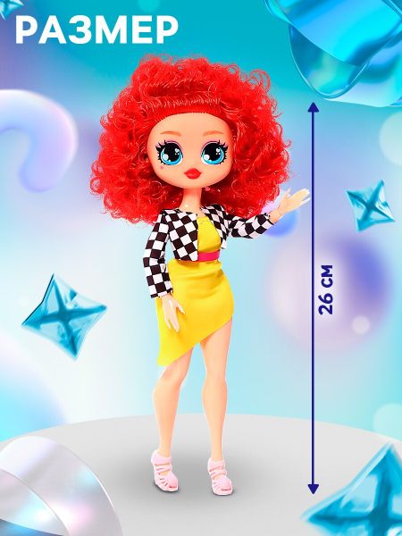 Кукла «Кудряшка Рина», шарниры в руках, красный. Кукла «Кудряшка Рина» с шарнирными руками — стильная модница, с которой легко создать множество сюжетов и образов для увлекательной игры. <b> Особенности</b> <ul> <li> Кукла высотой 26 см с кудрявыми яркими красными локонами, которые можно расчесывать и создавать стильные прически.</li> <li> Рина одета в яркую трендовую одежду, что подчеркивает ее образ современной девчонки.</li> <li> Благодаря шарнирам руки куклы сгибаются и вращаются, делая ее движения естественными и реалистичными.</li> <li> Кукла выполнена из прочного и безопасного пластика. Все материалы гипоаллергенны, без запаха и безопасны для детей от 3 лет.</li> </ul> <b> Играть в куклы — полезно!</b> Игры с куклой помогают девочке развивать чувство стиля, учиться ухаживать за внешностью и придумывать модные образы. Кукла «Кудряшка Рина» станет отличным подарком для девочек старше 3 лет, которые любят модные игры с куклами и мечтают о стильной подружке. Упакована в красивую картонную коробку, идеально подходит для подарка на любой праздник или день рождения. С «Кудряшкой Риной» каждая девочка почувствует себя настоящим стилистом!