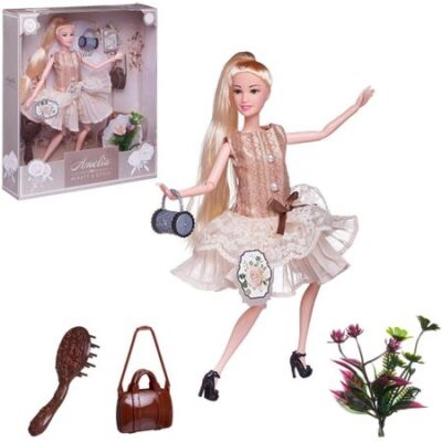 Кукла выглядит как красивая молодая девушка, которая разбирается в новинках моды и любит следить за собой. Ребенок, играя с такой куклой, придумает разные сюжеты, в которых он использует все наряды для игрушечной подружки. Также в наборе имеются модные аксессуары. У куклы подвижны части тела, благодаря чему в процессе игры девочка сможет менять положение игрушки.Комплектность: кукла, расческа, сумка – 2 шт., букет цветов.Материалы: полимерные материалы, текстиль.Упаковка: коробка с окошком.