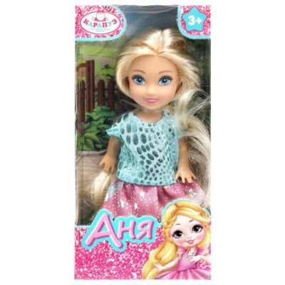 Кукла без озвучки КАРАПУЗ ANNA-C16-BB. Кукла «Аня» ТМ «Карапуз» – отличный подарок для вашей принцессы!<br> <br> Очаровательная куколка Аня одета в нарядное платьице с блестящими элементами. Одежду и аксессуары легко снять и надеть. У Анечки длинные красивые волосы, которые хозяйка куклы сможет заплетать в разные прически. Детально проработанный дизайн игрушки вдохновит девочку на множество увлекательных игровых сюжетов. Благодаря небольшому размеру кукла отлично подойдет для игр с кукольным домиком.<br> <br> Игра с куклой ТМ «Карапуз» развивает:<br> — чувство вкуса и стиля<br> — речь<br> — воображение<br> — социально-коммуникативные навыки<br> <br> Рост куклы: 12 см. Материал: пластмасса + текстиль.<br> Рекомендовано детям от 3-х лет.