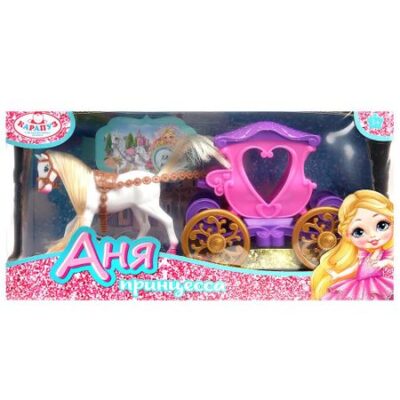 Кукла без озвучки КАРАПУЗ В1791730-HCAR-RU. Игровой набор «Карета и лошадь» ТМ «Карапуз» станет прекрасным подарком для маленькой принцессы:<br> — подходит для кукол ростом 12 см<br> — подвижные колеса<br> — милый дизайн<br> — яркая расцветка<br> <br> Этот интересный набор с фиолетово-розовой каретой, запряженной белой лошадкой, непременно понравится вашей девочке и вдохновит ее на увлекательные сюжеты для игр. Она с удовольствием будет ухаживать за гривой и хвостом милого животного, а также устраивать для своих любимых маленьких куколок прогулки в красивой карете, достойной королевских особ.<br> <br> Игра с набором ТМ «Карапуз» позволяет строить сюжетно-ролевые линии и развивает:<br> — воображение и фантазию<br> — мелкую моторику<br> <br> Размер лошадки с каретой: 35 х 16 х10 см. Размер упаковки: 39 х 20 х 12,5 см.<br> Материал: пластмасса.<br> Рекомендовано детям от 3-х лет.