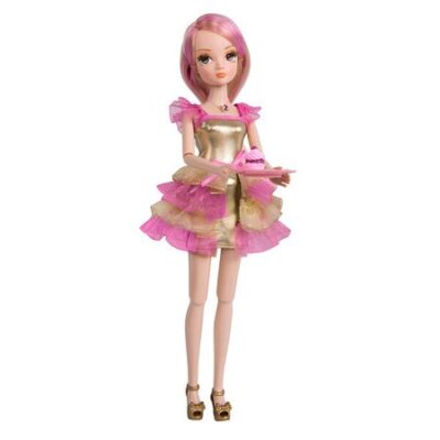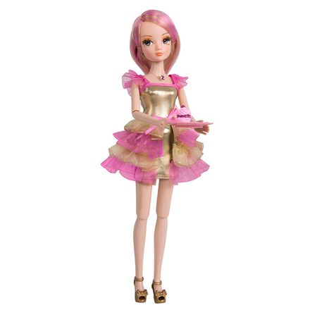 У куклы розово-золотое платье с пышной юбкой. Юбочка платья украшена оборками из воздушной ткани, а на поясе ленточка, которую можно завязать в бант. На ногах куклы – элегантные туфельки золотого цвета на высоком каблучке. Длинные шикарные волосы Сони с розовыми локонами красиво причесаны и собраны в пышный хвост. Волосы прочно прошиты по всей голове. Тело куклы шарнирное, благодаря чему ему можно придать разные реалистичные позы. Руки и ноги можно сгибать в локтях и коленях, а голову поворачивать. Высота куклы 28 см.