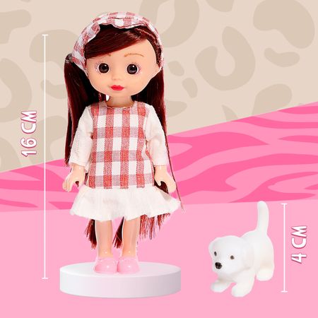 Кукла классическая «Малышка Сонечка» с питомцем. Ваша принцесса любит играть в куклы и ухаживать за животными? Тогда этот набор с куклой и питомцем точно порадует ее! С ним ребенок сможет придумать множество ярких игровых сюжетов. Набор упакован в красочную коробочку, поэтому его можно вручить в подарок даже без дополнительной праздничной упаковки. <b> Подробнее о наборе</b> <ul> <li> Высота куклы — 16 см. Игрушка очень компактная, поэтому ее удобно захватить с собой на прогулку, в гости и даже в путешествие!</li> <li> Кукла шарнирная в плечах и бедрах, что позволит придать естественные позы и сделает игру более увлекательной.</li> <li> Одежду, обувь и головной убор можно легко снять, чтобы сменить образ и почувствовать себя настоящим стилистом!</li> <li> Длинные волосы позволяют делать креативные прически, будь то косы или локоны. Волосы прошиты по окружности головы.</li> <li> В комплекте собачка высотой 4 см.</li> <li> Есть аксессуары для питомца: лежанка размером 5 × 4 × 1 см, 3 миски, 3 бутылочки для питания, 3 косточки длиной 1 см.</li> <li> Подходит для детей в возрасте от 3 лет.</li> </ul> В серии наборов представлены и другие куклы. Соберите их все! <b> Польза игр с набором</b> Взаимодействуя с такими игрушками, девочка осваивает социальные роли, учится обращаться с животными, тренирует фантазию и эстетический вкус.