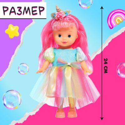 Кукла классическая «Лапушки. Единорожка», в платье. Кукла «Лапушки. Единорожка» — игрушка, которая позволит вашему ребенку окунуться в захватывающий мир моды и стиля. Она станет идеальным компаньоном в играх и развлечениях вашего малыша. <b> Особенности куклы</b> <ul> <li> Длинные волосы для творчества. У куклы длинные волосы, с которыми ваш ребенок сможет творить и создавать разнообразные прически и укладки, развивая свою креативность и фантазию.</li> <li> Множество стилей. Ваш ребенок сможет творчески подходить к созданию образов, наряжая куклу в платье, ободок и обувь. Они с легкостью надеваются и снимаются.</li> <li> Удобный размер. Высота куклы 24 см, поэтому она легко поместится в руке ребенка.</li> <li> Подвижные части тела. Руки и ноги куклы имеют подвижные элементы в плечах и бедрах.</li> </ul> В серии представлены и другие куклы. Соберите их всех! <b> Игра с пользой</b> Во ремя игры малышка потренирует воображение и чувство стиля, эстетический вкус, моторику рук и освоит социальные роли и модели поведения взрослых.