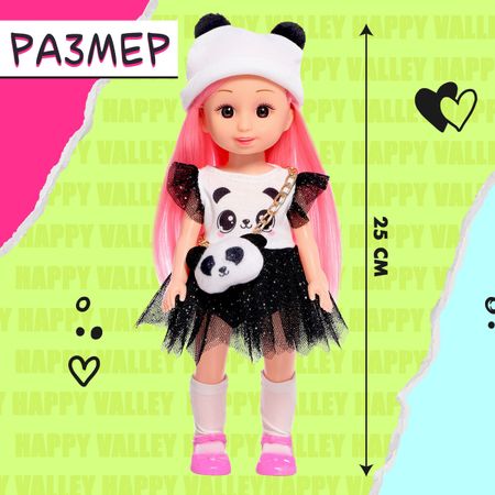 Кукла классическая «Милая: пандочка», в платье и шапке. Кукла «Милая пандочка» — игрушка, которая позволяет вашему ребенку окунуться в захватывающий мир моды и стиля. Она станет идеальным компаньоном в играх и развлечениях вашего малыша. <b> Особенности куклы</b> <ul> <li> Длинные волосы для творчества. У куклы длинные волосы, с которыми ваш ребенок сможет творить и создавать разнообразные прически и укладки, развивая свою креативность и фантазию.</li> <li> Множество стилей. Ваш ребенок сможет творчески подходить к созданию образов, наряжая куклу в платье, шапочку, сумку, гольфы и обувь. Они с легкостью надеваются и снимаются.</li> <li> Удобный размер. Высота куклы 25 см, поэтому она легко поместится в руке ребенка.</li> <li> Подвижные части тела. Руки и ноги куклы имеют подвижные элементы в плечах и бедрах.</li> </ul> В серии представлены и другие куклы. Соберите их всех! <b> Игра с пользой</b> В процессе игры малышка потренирует воображение и чувство стиля, эстетический вкус, моторику рук и освоит социальные роли и модели поведения взрослых.