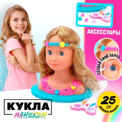 Кукла-манекен для создания причесок «Белла» с аксессуарами. Кукла-манекен для создания причесок «Белла» станет отличным компаньоном для юных парикмахеров. С ее помощью девочка сможет экспериментировать с различными стилями и создавать уникальные образы. <b> Особенности</b> <ul> <li> Кукла-манекен с густыми волнистыми волосами. Волосы прошиты по всей голове и имеют длину 25 см</li> <li> Яркие аксессуары: расческа, разноцветные стразы на клейкой основе и декоративные элементы для ободка</li> <li> Подсветка, которая создаст дополнительное удобство при создании причесок. Работает от 3 батареек типа АА (не входят в комплект).</li> <li> Развивает фантазию и креативность. Девочка сможет придумывать свои уникальные прически и воплощать их в жизнь</li> <li> Изготовлена из качественной пластмассы и не содержит мелких деталей</li> </ul> Идеальный подарок для дня рождения, Нового года или просто так, чтобы порадовать ребенка. Кукла-манекен для создания причесок «Белла» станет любимой игрушкой и поможет развить мелкую моторику, координацию движений и чувство стиля.