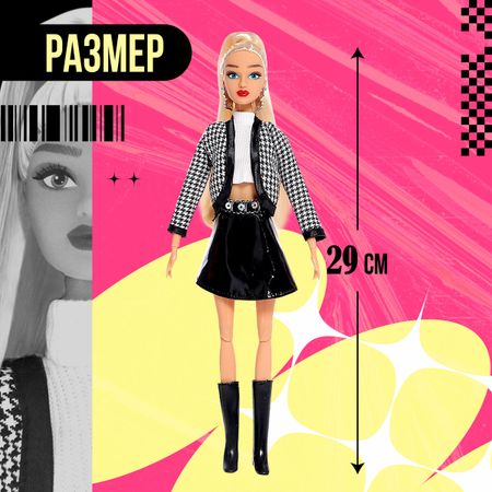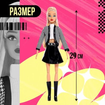 Кукла-модель шарнирная «Студия моды», с комплектом одежды. Ваша принцесса любит играть в куклы и модничать? Значит, она будет в восторге от этого набора с куклой и ее гардеробом! Малышка сможет комбинировать предметы одежды и придумает много интересных образов для новой куколки. Набор упакован в красочную коробочку, поэтому его можно вручить в подарок даже без дополнительной праздничной упаковки. <b> Подробнее об игрушке</b> <ul> <li> Высота куклы — 30 см.</li> <li> Шарнирная в плечах, локтях, кистях рук, бедрах и коленях, что позволит придавать естественные позы и сделает игру более увлекательной.</li> <li> Одежда и обувь легко снимаются — ребенок сможет менять образы, проявив фантазию, и почувствует себя настоящим стилистом!</li> <li> Длинные волосы, прошитые по окружности головы, позволяют делать креативные прически, будь то косы или локоны.</li> <li> Одежда фиксируется липучками, поэтому выглядит аккуратно и хорошо сидит на кукле. А еще с такими застежками малышка сможет без труда переодеть ее.</li> <li> В комплект входит одежда для создания разных образов: 3 пары обуви, сумка, кофта, юбка, меховая жилетка, укороченный кардиган.</li> <li> Подходит для детей в возрасте от 3 лет.</li> </ul> В серии кукол представлены и другие персонажи. Соберите их все! <b> Играть в куклы — полезно</b> Взаимодействуя с такими игрушками, девочка осваивает социальные роли, тренирует фантазию и эстетический вкус.