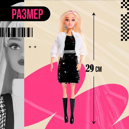 Кукла-модель шарнирная «Студия моды», с комплектом одежды. Ваша принцесса любит играть в куклы и модничать? Значит, она будет в восторге от этого набора с куклой и ее гардеробом! Малышка сможет комбинировать предметы одежды и придумает много интересных образов для новой куколки. Набор упакован в красочную коробочку, поэтому его можно вручить в подарок даже без дополнительной праздничной упаковки. <b> Подробнее об игрушке</b> <ul> <li> Высота куклы — 30 см.</li> <li> Шарнирная в плечах, локтях, кистях рук, бедрах и коленях, что позволит придавать естественные позы и сделает игру более увлекательной.</li> <li> Одежда и обувь легко снимаются, поэтому ребенок может менять образы, проявив фантазию, и почувствует себя настоящим стилистом!</li> <li> Длинные волосы, прошитые по окружности головы, позволяют делать креативные прически, будь то косы или локоны.</li> <li> Одежда фиксируется липучками, поэтому выглядит аккуратно и хорошо сидит на кукле. А еще с такими застежками малышка сможет без труда переодеть ее.</li> <li> В комплект входит одежда для создания разных образов: платье, 2 шубки, 3 пары обуви, сумка, штаны, майка.</li> <li> Подходит для детей в возрасте от 3 лет.</li> </ul> В серии кукол представлены и другие персонажи. Соберите их все! <b> Играть в куклы — полезно</b> Взаимодействуя с такими игрушками, девочка осваивает социальные роли, тренирует фантазию и эстетический вкус.