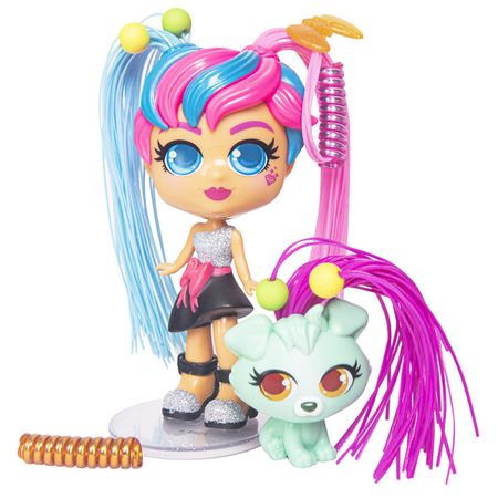 Игрушка из пластмассы, в наборе, с маркировкой “Silverlit”, “Curli Girls”. В набор входят: кукла – 1 шт., фигурка питомца – 1 шт., зажим для завивки – 1 шт., выпрямитель для прядей – 1 шт., индикатор температуры – 1 шт., бусинки – 6 шт., резинки для прядей – 6 шт., заколка – 1 шт., спиральки для волос – 2 шт., подставка для куклы – 1 шт., инструкция – 1 шт.