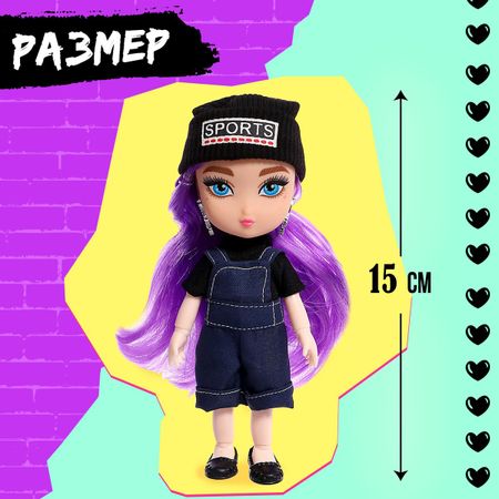Кукла шарнирная «Крутая малышка» с аксессуарами, в джинсовом комбинезоне. Ваша малышка любит играть в куклы и модничать? Тогда кукла «Крутая малышка» с аксессуарами станет эффектным подарком для нее! Вместе они отправятся на модный показ, ведь кукла — отличный компаньон для больших воображаемых и реальных приключений. Куколка очень любит разные прически и готова каждый день экспериментировать со своим образом. <b> Подробнее об игрушке</b> <ul> <li> Высота — 21 см.</li> <li> Кукла шарнирная в локтях, кистях рук, коленях и щиколотках, также имеются подвижные элементы в плечах и бедрах, что позволяет придавать ей естественные позы и делает игру более увлекательной.</li> <li> Головной убор, одежда и обувь легко снимаются, поэтому ребенок сможет менять образы и почувствует себя настоящим стилистом!</li> <li> Одежда фиксируется липучками, поэтому выглядит аккуратно и хорошо сидит на кукле. А еще с такими застежками малышка сможет без труда переодеть ее.</li> <li> Длинные волосы, прошитые по всей голове, позволяют делать креативные прически, будь то косы или локоны.</li> <li> В комплекте аксессуары, они разнообразят ролевые сюжеты!</li> <li> Подходит для детей в возрасте от 3 лет.</li> </ul> В серии наборов представлены и другие куколки. Соберите их все! <b> Играть в куклы — полезно</b> Взаимодействуя с такими игрушками, девочка улучшает сообразительность, тренирует фантазию и эстетический вкус.