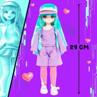 Кукла шарнирная «Крутая малышка», 29см. Кукла шарнирная «Крутая малышка» высотой 29 см привлекает внимание своим стильным и ярким образом. <b> Особенности</b> <ul> <li> Шарнирное тело, позволяющее кукле принимать различные позы, что делает игру с ней еще интереснее и разнообразнее </li> <li> Длинные голубые волосы можно расчесывать и укладывать в разные прически, создавая новые образы </li> <li> Яркий сиреневый костюм, который можно легко снять и сменить на другую одежду, открывая простор для разнообразных игр и фантазий </li> <li> Стильный козырек на голове и сиреневые кеды дополняют ее образ, делая куклу еще более модной и современной </li> </ul> Эта кукла станет отличным подарком на день рождения, праздник или просто для поощрения ребенка. Она подходит для детей, увлеченных модой и стилем, и станет не только игрушкой, но и источником вдохновения для создания новых модных образов. Кукла будет радовать своего владельца, развивая воображение и творческие способности.