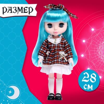 Кукла шарнирная «Амелия», 28 см, платье в клеточку. Кукла «Амелия» — это стильная игрушка для девочек от 3 лет. Игра с куклой поможет ребенку развить воображение, мелкую моторику и координацию движений. Она станет отличным подарком на праздник и порадует любого маленького любителя сказок и приключений. <b> Особенности</b> <ul> <li> Шарнирные соединения в коленях, локтях, кистях рук, а также подвижные элементы в плечах и бедрах позволяют придавать кукле естественные позы.</li> <li> Длинные волосы куклы подходят для обучения ребенка плетению кос и созданию стильных причесок.</li> <li> Высота куклы составляет 28 см — это делает ее удобной для игр и переноски.</li> <li> В горизонтальном положении у куклы закрываются глазки, это добавляет элемент интерактивности.</li> <li> Высокое качество материалов обеспечивает долговечность и безопасность игрушки.</li> </ul> <b> Роль куклы в развитии ребенка</b> <ul> <li> Воспитание человеческих чувств, нравственности. Ребенок будет «учить» куклу тому, чему научился сам.</li> <li> Пропорции куклы формируют правильные представления о своем теле у ребенка. Это важно для его дальнейшего психического и физического здоровья.</li> </ul>