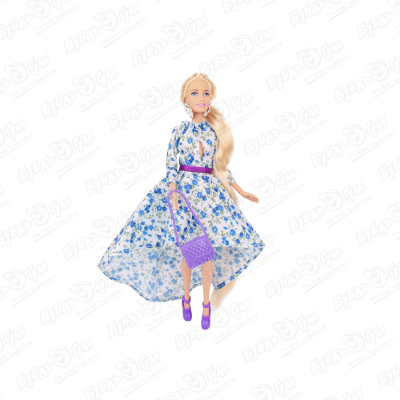 Кукла София модница в длинном платье с цветами с фиолетовыми аксессуарами