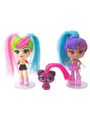 Игрушка из пластмассы, в наборе, с маркировкой “Silverlit”, “Curli Girls”. В набор входят: кукла – 2 шт., фигурка питомца — 1 шт., зажим для завивки – 1 шт., выпрямитель — 1 шт., индикатор температуры – 1 шт., бусинки – 12 шт., заколка – 2 шт., спиральки для волос — 4 шт., резинки для прядей — 9 шт., подставка для куклы – 2 шт., инструкция – 1 шт.