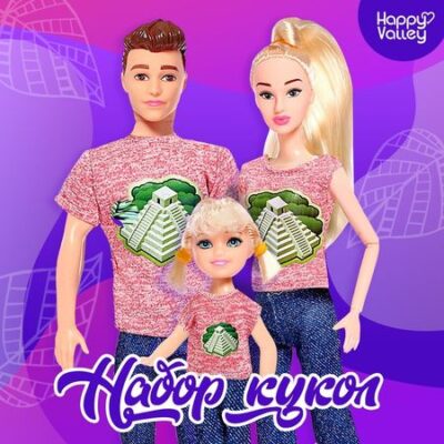 Порадуйте свою дочку целой кукольной семьёй. В наборе есть кукла-мама шарнирная, кен не шарнирный и дочка. Ваша девочка с удовольствием подружится с куколками, будет о них заботиться и осваивать социальные роли и модели поведения.Высота куколки-мамы — 29 см, куклы-папы — 29,5 см, куколки-девочки — 13,5 см.Юная хозяюшка покормит куколок и станет с ними играть. Сделает укладку на длинные волосы мамы, прошитые по окружности головы и на темечке, заплетет косички ребёнку (волосы малышки прошиты по окружности головы и пробор), отутюжит костюм для папы.Для детей старше 3 лет.