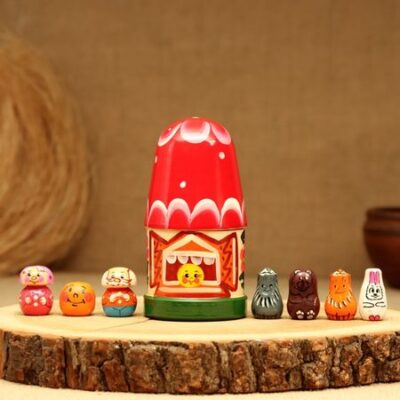 Кукольный театр пальчиковый «Колобок», набор: теремок и 7 кукол, дерево, 14 см