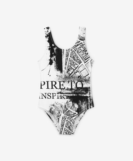 Слитный чёрно-белый купальник с оригинальным принтом — прекрасное решение для пляжного отдыха! Эластичный материал не сковывает движений, прекрасно держит форму и быстро сохнет.