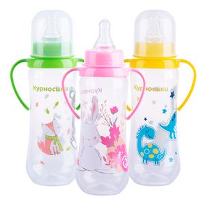 Бутылочка изготовлена из полипропилена — термостойкого небьющегося пластика, который не содержит бисфенол А. Бутылочка комплектуется силиконовой соской. Величина отверстия соски обеспечивает медленный поток, оптимальный для негустого питания: молока, молочной смеси, чая, воды. Для удобства использования бутылочка имеет рельефную мерную шкалу, деления которой строго соответствуют указанному объему.