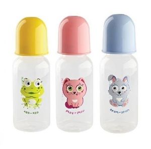 Бутылочка изготовлена из полипропилена — термостойкого небьющегося пластика, который не содержит бисфенол А.Бутылочка комплектуется силиконовой соской с антивакуумным клапаном, который снижает вероятность заглатывания малышом воздуха при сосании.Величина отверстия соски обеспечивает медленный поток, оптимальный для негустого питания: молока, молочной смеси, чая, воды.Для удобства использования бутылочка имеет рельефную мерную шкалу, деления которой строго соответствуют указанному объему.
