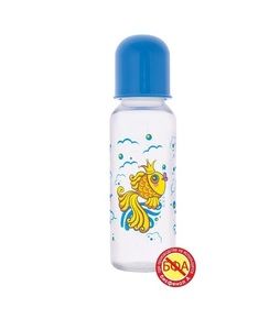 Бутылочка изготовлена из полипропилена — термостойкого небьющегося пластика, который не содержит бисфенол А.Бутылочка комплектуется силиконовой соской с антивакуумным клапаном, который снижает вероятность заглатывания малышом воздуха при сосании.Величина отверстия соски обеспечивает медленный поток, оптимальный для негустого питания: молока, молочной смеси, чая, воды.Для удобства использования бутылочка имеет рельефную мерную шкалу, деления которой строго соответствуют указанному объему.