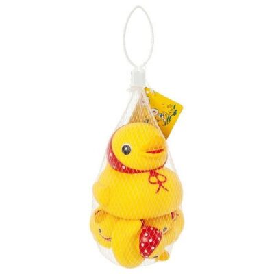 Игрушка для ванной «Семейка уточки». Набор игрушек выполнен из мягкого безопасного материала, способен превратить обычное купание в веселую игру. В наборе четыре разукрашенные уточки: большая уточка в платочке и три маленькие. Высота игрушек: маленькие уточки – 4,5 см, большая уточка – 7 см. Возраст применения — с 6 месяцев.