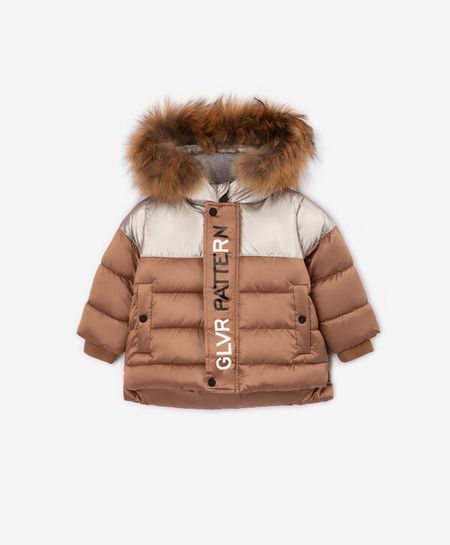 Теплая зимняя куртка на искусственном пуху — основа прогулочного гардероба мальчика. Комфортный объем, оптимальная длина, не сковывающая движений, заниженная линия спинки, защищающая от продувания, делают куртку превосходным решением на каждый день. Дизайн модели построен на колорблокинге и сочетании фактур. Бежевая и серебристая плащовки, меланжевая подкладка создают интересный цветовой и тактильный контраст, делают куртку стильной и запоминающейся. Куртка застегивается на молнию, закрытую ветрозащитной планкой с шрифтовыми элементами. Капюшон оформлен отстегивающимся мехом енота.