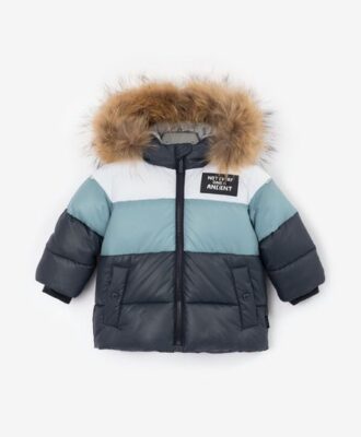 Зимняя стёганая куртка, построенная на колорблокинге, ассоциируется с зимой, морозами, снегом! Выполненная из блестящей плащовки, на искусственном пуху, она прекрасно согревает, а также защищает от холода и ветра. Трикотажная подкладка способствует мягкости, уюту, комфорту в повседневной эксплуатации. Куртка имеет два кармана на кнопках, капюшон с натуральным отстёгивающимся мехом енота, а также эластичные манжеты на рукавах, которые не позволяют холодному воздуху проникать внутрь. На передней части расположена лаконичная нашивка, на спинке модели — шрифтовой принт и светоотражающий элемент, способствующий безопасности мальчика в тёмное время суток.Куртка застёгивается на молнию. С плащевыми брюками и полукомбинезоном она составит красивый и практичный зимний комплект для длительных прогулок на свежем воздухе.