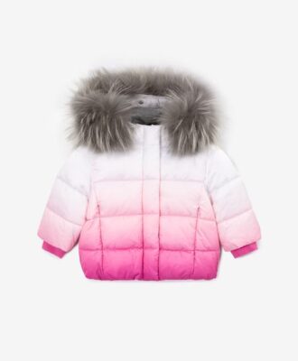 Градиент — один из главных трендов последних сезонов! Зимняя стёганая куртка с плавным переходом из яркого розового в белый порадует девочку в морозные дни! Выполненная из блестящей плащовки, на искусственном пуху, она прекрасно согревает и защищает ветра. Трикотажная подкладка способствует мягкости, уюту, комфорту в повседневной эксплуатации. Куртка имеет два боковых кармана, капюшон с отстёгивающимся мехом енота, а также эластичные манжеты на рукавах, которые не позволяют холодному воздуху проникать внутрь. На спинке модели расположен светоотражающий элемент, способствующий безопасности девочки в тёмное время суток.Куртка застёгивается на молнию и кнопки. С плащевыми брюками или полукомбинезоном она составит красивый и практичный зимний комплект для длительных прогулок на свежем воздухе.