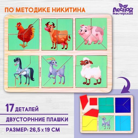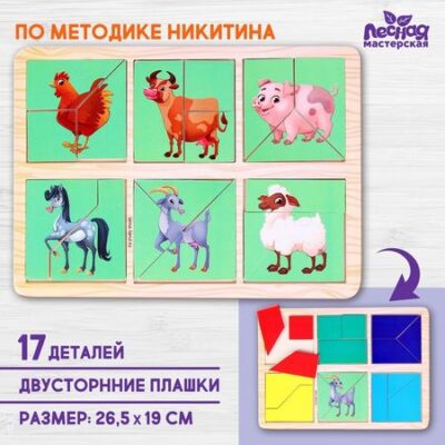 Головоломки — это отличный способ развития логики и мелкой моторики.Задача малыша — собрать 6 квадратов из цветных элементов: треугольников, прямоугольников и других фигур.В процессе ребёнок знакомится с новыми формами и цветами, учится соотносить части и целое. Постепенное усложнение заданий позволяет малышу самостоятельно осваивать материал и не прибегать к помощи родителей.
