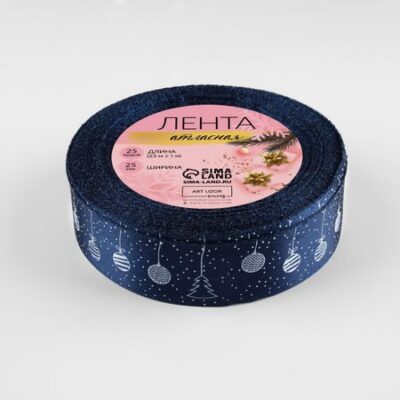 Лента атласная «Ёлочные игрушки», 25 мм, 23±1 м, темно-синяя №038. Новогодняя лента является универсальным помощником при изготовлении рукоделий, украшении интерьера, упаковке подарков и другого. Атласная лента гладкая и приятная на ощупь, легко складывается и крепится на изделие. Неповторимый дизайн не оставит равнодушным и подарит праздничную атмосферу.