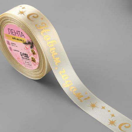 Лента атласная с тиснением «С Новым годом!», 25 мм, 23±1 м, бежевый. Новогодняя лента является универсальным помощником при изготовлении рукоделий, украшении интерьера, упаковке подарков и другого. Атласная лента гладкая и приятная на ощупь, легко складывается и крепится на изделие. Неповторимый дизайн не оставит равнодушным и подарит праздничную атмосферу.