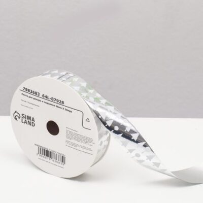 Лента новогодняя для декора и подарков, серебряная
