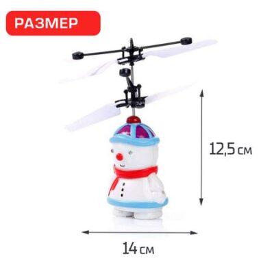Летающая игрушка «Снеговик», работает от аккумулятора. Супербол подходит для игр дома и на улице. В нем установлен сенсор, который срабатывает при контакте с твердой поверхностью. После соприкосновения с рукой, ногой, головой или полом транспорт сразу устремляется вверх. <b> Особенности супербола</b> <ul> <li> Во время полета на корпусе загораются светодиодные лампочки.</li> <li> Супербол отталкивается от руки и взлетает на высоту до 20 см.</li> <li> Время работы от полностью заряженной батареи — 10 минут.</li> <li> Заряжается от USB. Время зарядки — 80 минут.</li> </ul> <b> В комплект входит:</b> <ul> <li> супербол;</li> <li> зарядное устройство USB.</li> </ul> Для детей старше 8 лет.